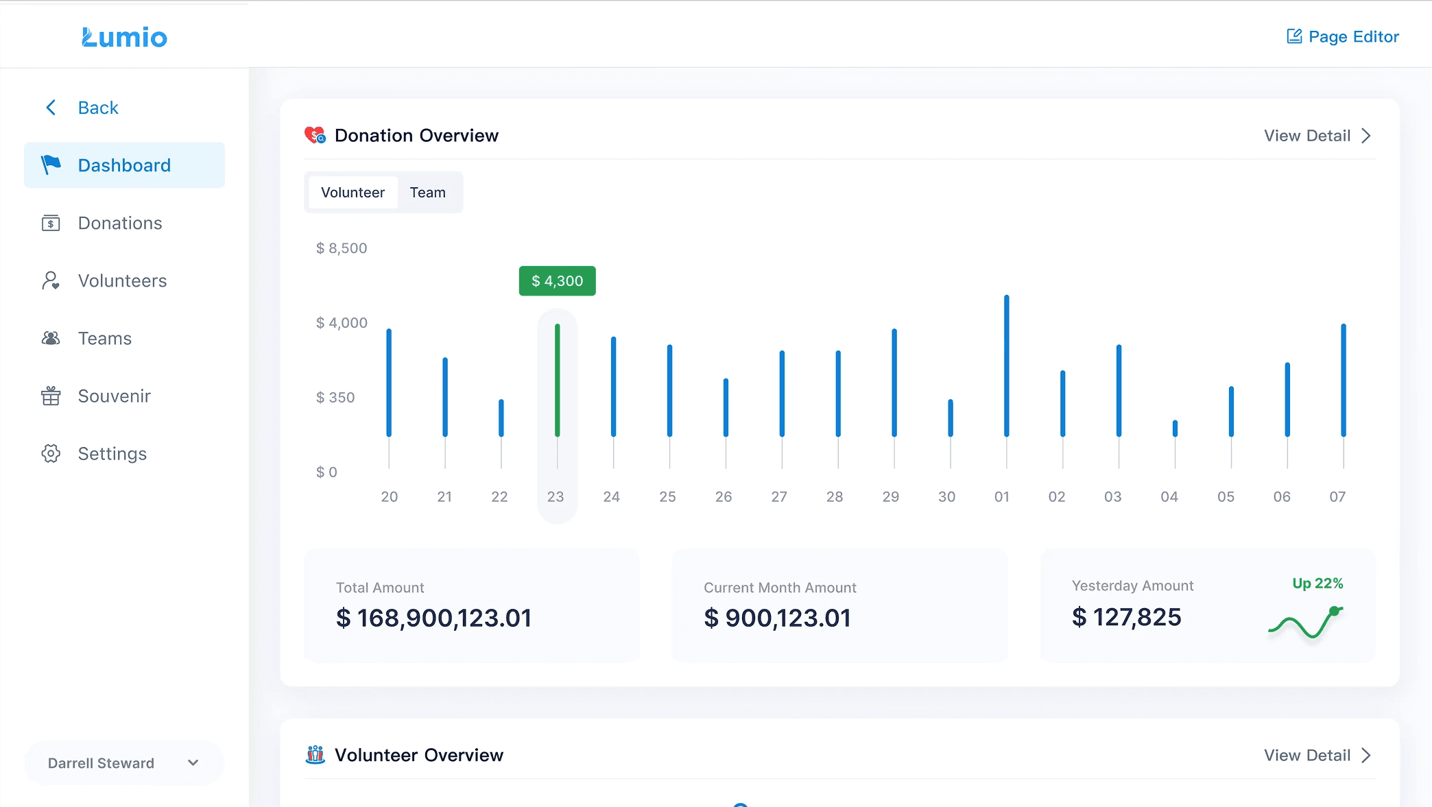 Manage every fundraising type — Flag Day, Raffles, Crowdfunding, or Marathons — all from one place. Easily oversee campaigns, volunteers, and donor data in a single, connected workspace.